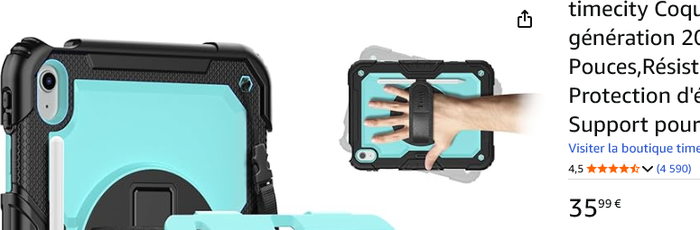 Vends coque de protection ultra-résistante timecity, spécialement conçue pour iPad 10ème génération 10,9" (modèles A2696/A2757/A2777). Idéale pour protéger votre tablette des chocs, chutes et rayures du quotidien.