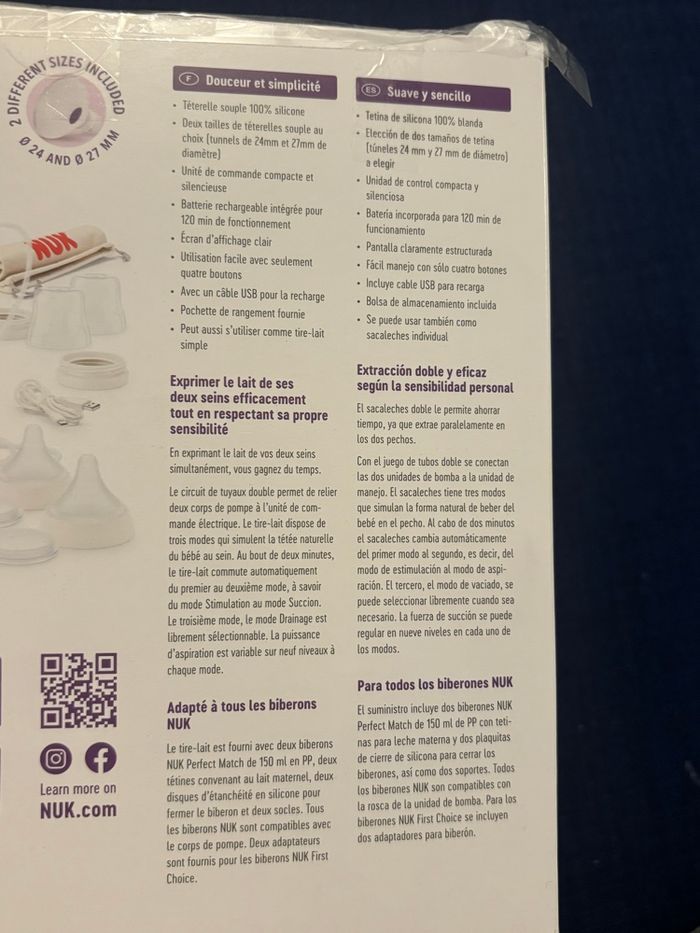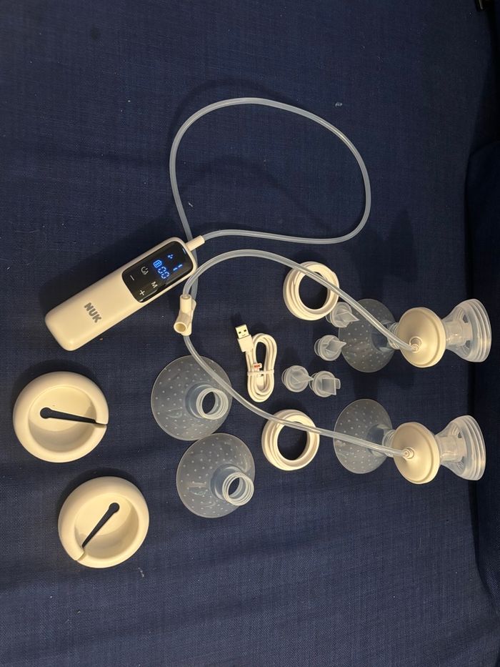 Vend des tire lait de la marque Nuk. Acheter en décembre 2024 avec facture à l’appuie( voir dernière photo) Fonctionne parfaitement bien. Utiliser 1 mois maximum car mon bébé ne tétée pas et manque de lait. Acheter car la pharmacie n’avait pas en stock les tire lait a la sortie de maternité.