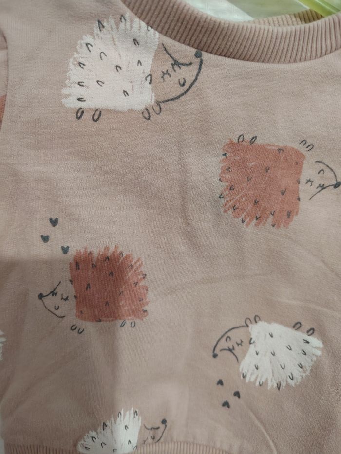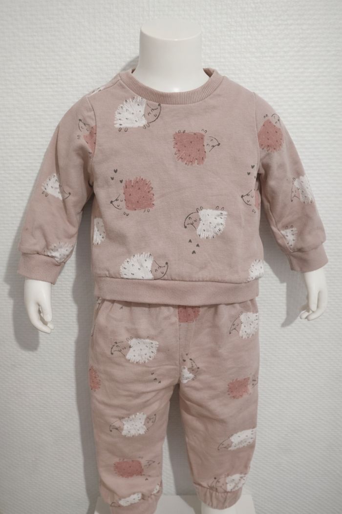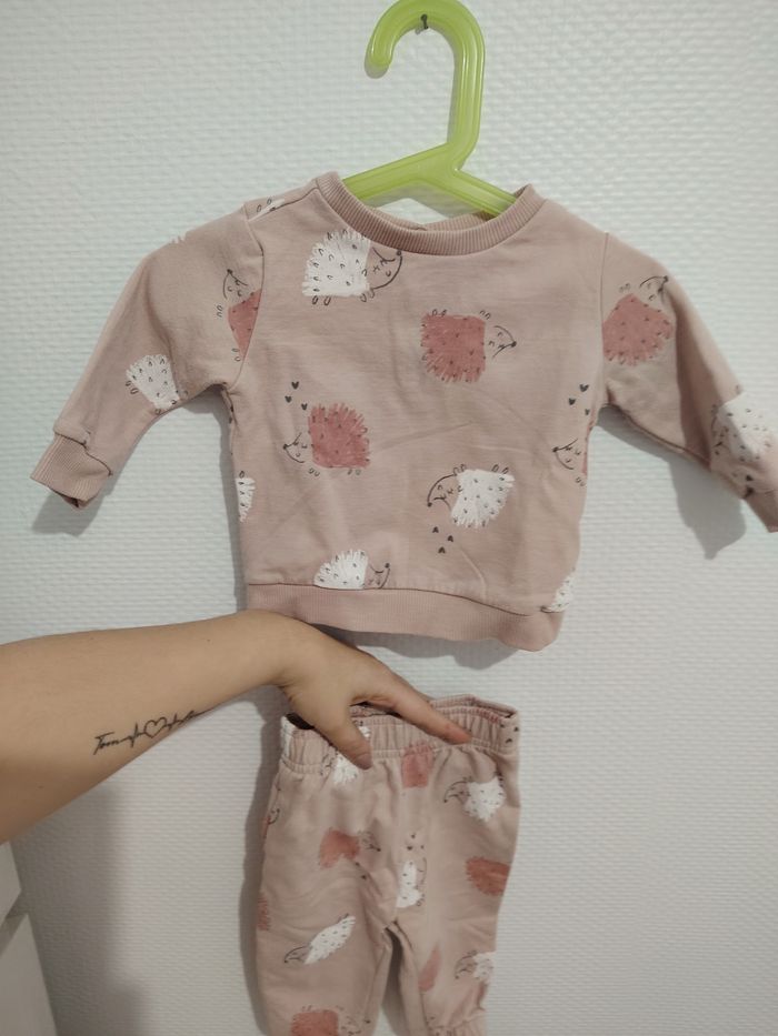 Composé d’un sweat manches longues et d’un pantalon assorti, dans de doux tons rose/beige avec imprimés hérissons 🦔.