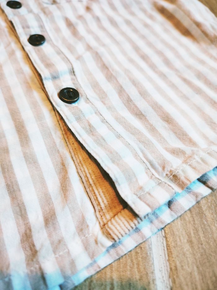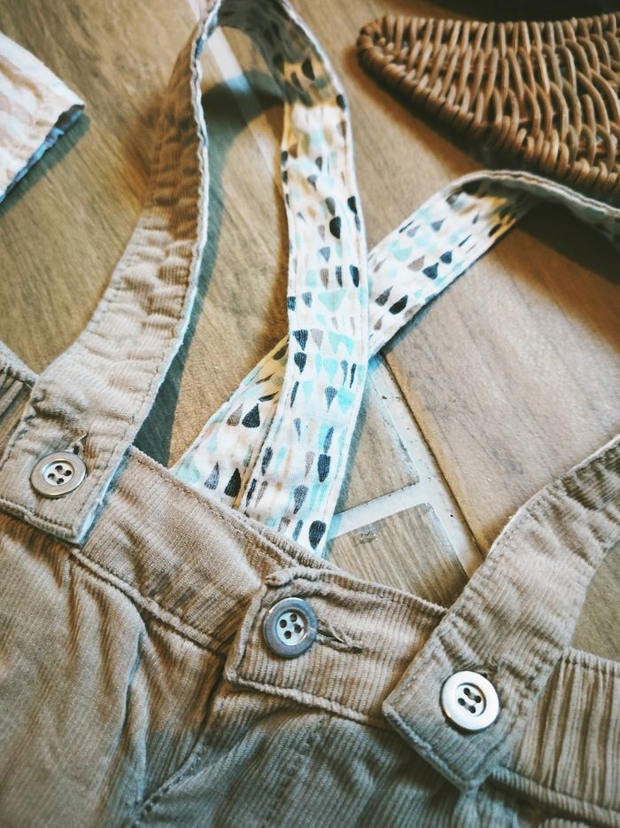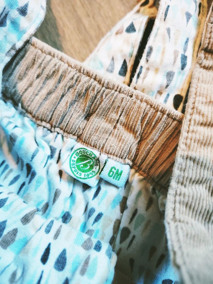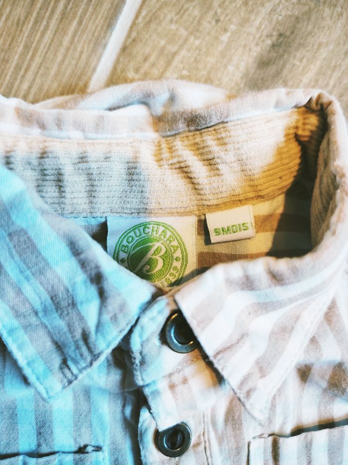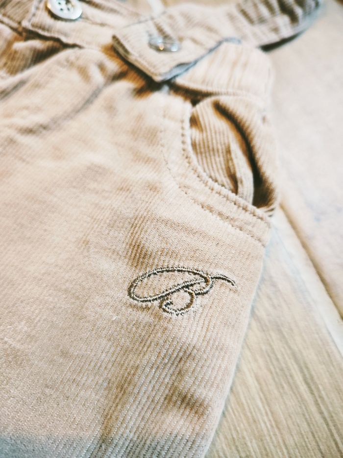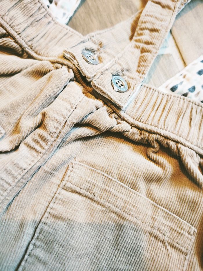 🧒🏻Bouchara - Ensemble Pantalon velours beige avec bretelles et chemise à carreaux - Taille 6 mois - photo numéro 10