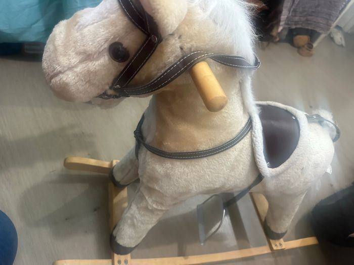 Cheval à bascule en peluche douce, en bon état. Modèle stable avec structure bois, poignées solides et étriers fonctionnels. Idéal pour les enfants, déco de chambre ou cadeau. Caractéristiques : • Poignées en bois • Selle confortable • Étriers intégrés • Peluche propre et douce • Très stable, bascule fluide • Hauteur adaptée aux jeunes enfants 💰 Prix conseillé : 20 € 📍 Retrait possible à [thonon] 📦 Envoi possible si besoin (à voir selon transport)