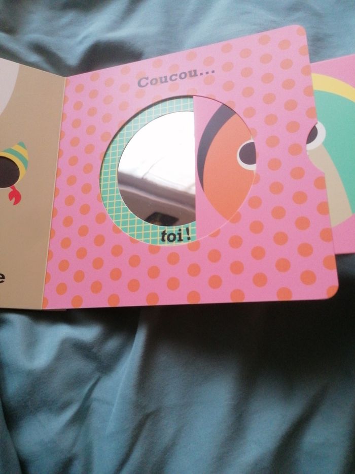 Livre bébé coucou soleil. Pousse, tourne, tire et fais glisser. Avec un miroir en dernière page. Livre neuf
