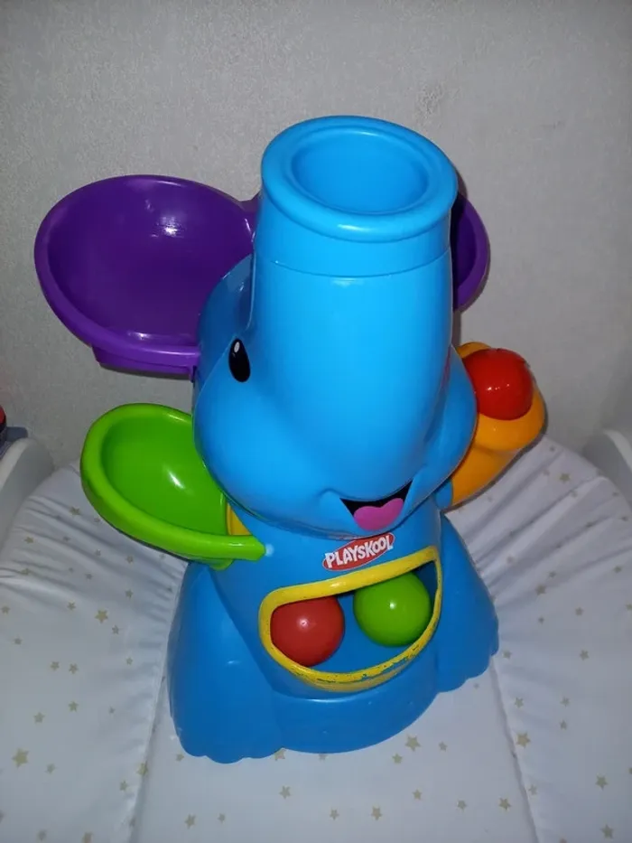 L'Aéro'Balles de Playskool réinventé! Découvrez avec Bébé ce circuit de balles animé grâce à l'air, en forme d'éléphant, où les balles sautent de manière imprévisible. Le tout en musique! Développe la relation de cause à effet. 2 balles colorées incluses. De 9 à 36 mois