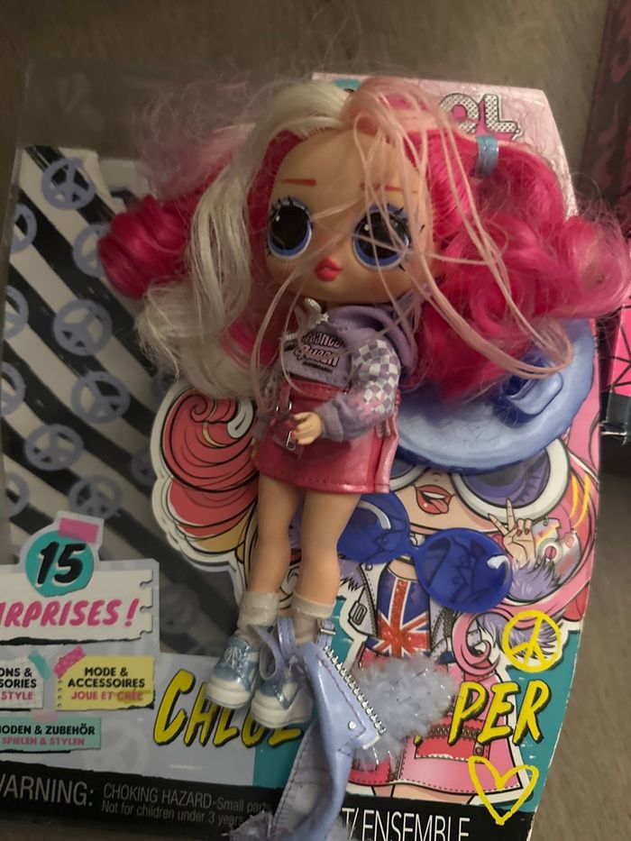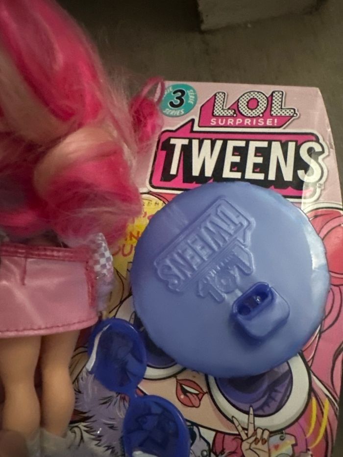 Je vends une poupée LOL Chloé pepper Surprise Tweens – série 3. La vente comprend : – la poupée – sa tenue (haut et jupe) – ses chaussures – quelques accessoires visibles sur la photo (lunettes, socle/couvercle Tweens) La boîte est présente uniquement pour présentation sur la photo, mais elle n’est pas complète et n’est pas vendue comme neuve. Poupée en état correct à bon état : cheveux déjà coiffés/joués, traces normales d’utilisation. Idéale pour jouer ou compléter une collection LOL. Remise en main propre possible ou envoi à vos frais.