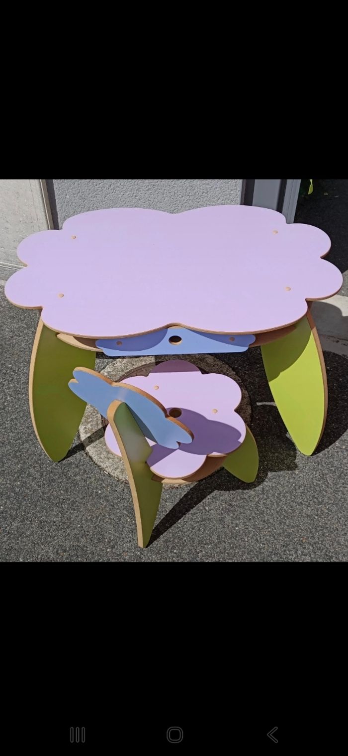 Ce set comprend un bureau spacieux en forme de fleur et sa chaise assortie