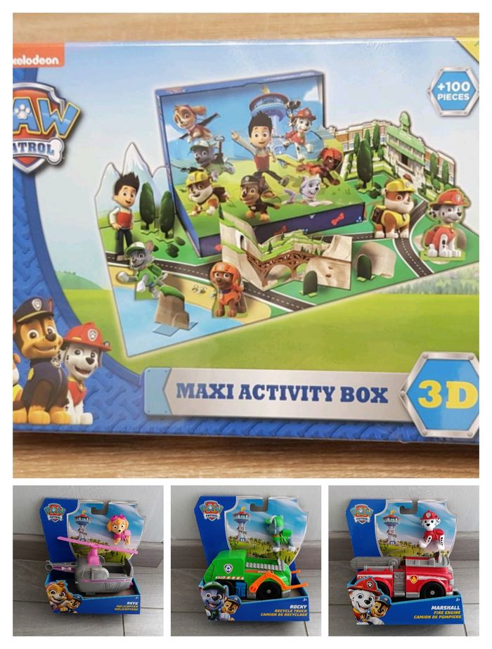 Bonjour je vends un lot Paw Patrol avec la maxi box d'activités Paw Patrol+ les 3 coffrets comprenant un véhicule et sa figurine correspondante. (Rouge, Rose, Vert)