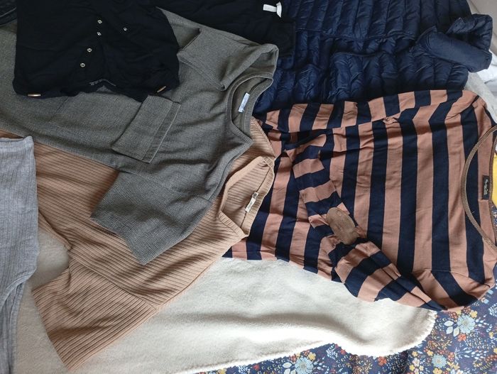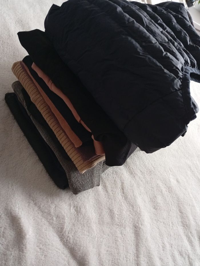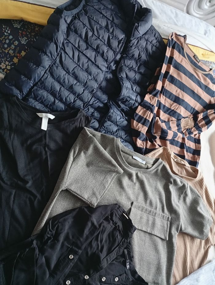 Remise sur lot activé. Lot 10 vêtements pour femmes entre le bon état et état satisfaisant. ⚠️ Tous les vêtements ont de petits défauts ( manque de boutons, fils tirés, petit trou, bouloches, la fermeture éclair de la veste Sans manches je n' arrive plus à la fermer...) Plusieurs marques : Zara, Pull& Bear, H&M, Atmosphère ... Ce lot est composé de : - 3 robes ( 1 Sans manches, 2 manches courtes) -2 blouses - 1 jupe ( marqué taille 38, mais taille plutôt petite) -1 Short -1 débardeur -1 t-shirt manches longues ( le cuir de un des coudes à rétréci) -1 veste sans manches Taille 34-36 Lot indissociable. #lotvetements #lotvetementsfemme #lotvetementsfemme36 #lotvetementszara36