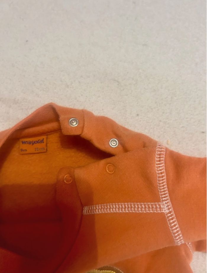 Je vends ce joli pull Mayoral pour bébé, de couleur terracotta, très doux et confortable.