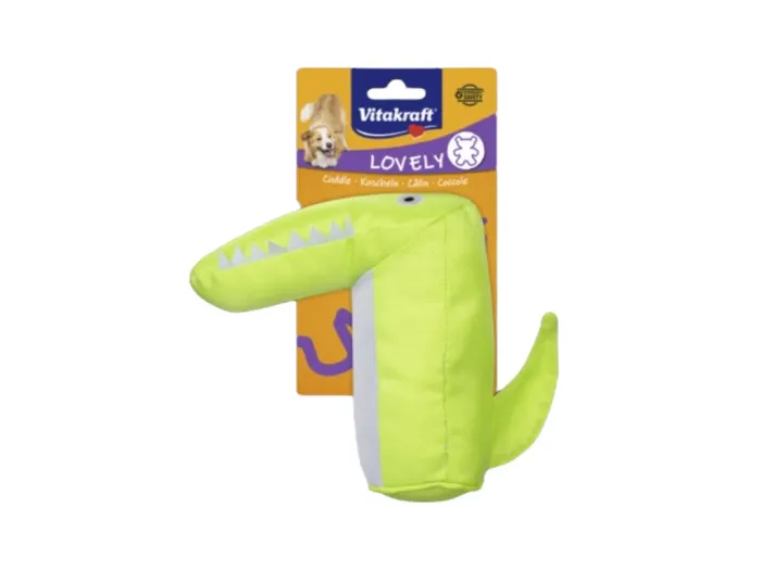 Jouet pour chien de la marque Vitakraft, modèle LOVELY, en coloris vert, avec couineur intégré pour stimuler le jeu. Conçu pour être transporté, secoué et mordillé, il convient parfaitement aux chiens de petite à moyenne taille. • Couleur : vert • Avec couineur intégré • Idéal pour le jeu actif : à lancer, tirer ou secouer • Format pratique à attraper