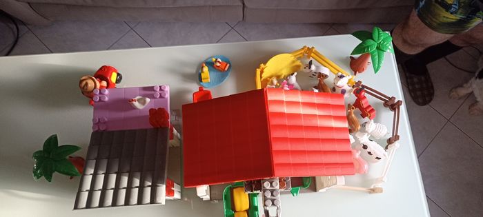 Construisez votre ferme grâce aux briques de construction Abrick. Une fois celle-ci bien installée, vous pourrez faire entrer dans son box votre cheval, sortir de l'écurie votre vache et mener votre mouton dans le champ.... Assemblez une à une les briques qui formeront votre ferme, vous allez devenir un vrai maçon et un véritable architecte en pensant aux moindres détails qui pourront faciliter la vie de votre agriculteur. Un local de stockage pour les aliments des animaux, un enclos pour chacun, tout est prévu pour le confort de tous. Le tracteur trouvera également sa place. Il sera toujours très accessible pour réaliser les divers travaux de la ferme.