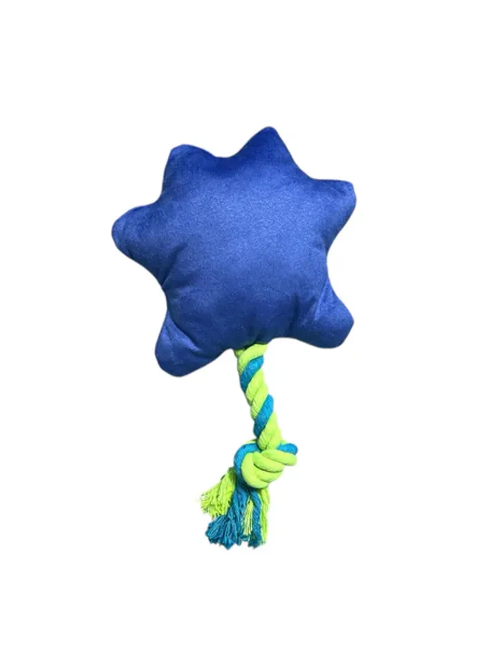 Jouet peluche bleue pour chien avec corde et couineur Neuf
