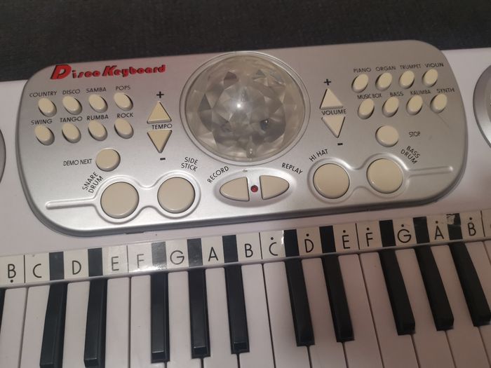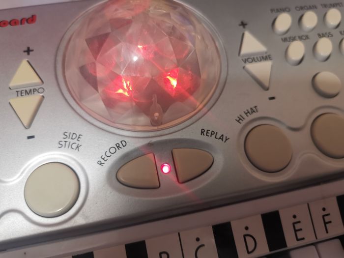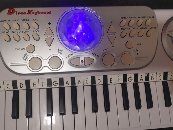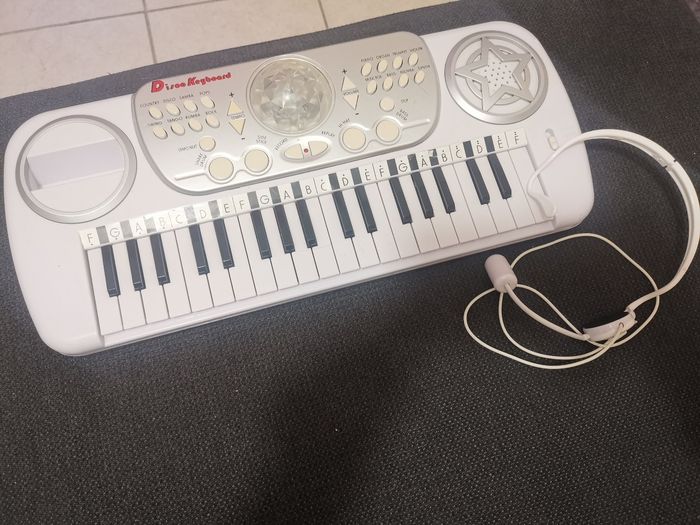 Clavier électronique de 37 touches avec 8 instruments sélectionnables et lumière disco. Sélection de 8 rythmes avec contrôle de la vitesse du tempo et 4 sons de percussion. 22 chansons de démonstration Enregistrement et lecture. Contrôle du volume de la musique. Haut-parleur méga basse. La prise Line-in permet aux enfants de connecter un iPod/ lecteur MP3/ lecteur CD/ téléphone portable et de chanter en même temps (appareils audio non fournis). Câble Line-in inclus. Avec mode de démonstration. Arrêt automatique pour économiser l'énergie.