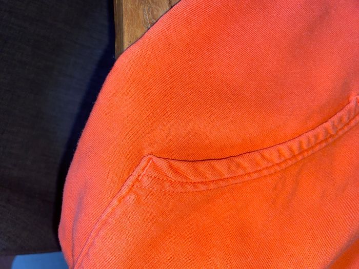 Occasion portée qui présente de petites imperfections,un point de couture a été fait aux coins de la poche centrale,ne se voient pas ! Et un minuscule accroc,de la taille d’une pointe de crayon sur le revers d’une manche,sinon il est en parfait état,cf photos