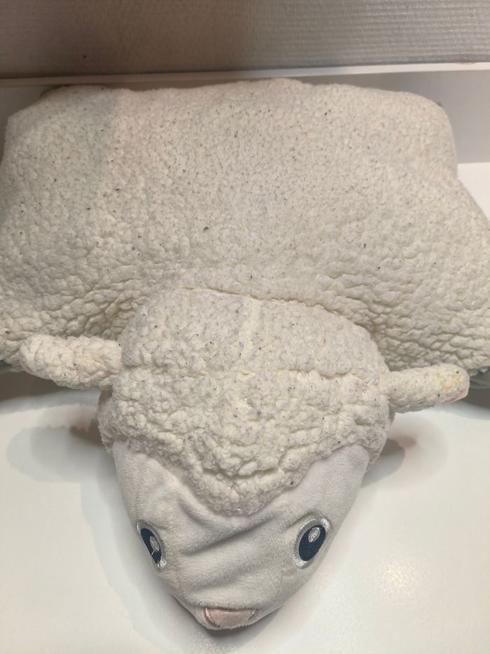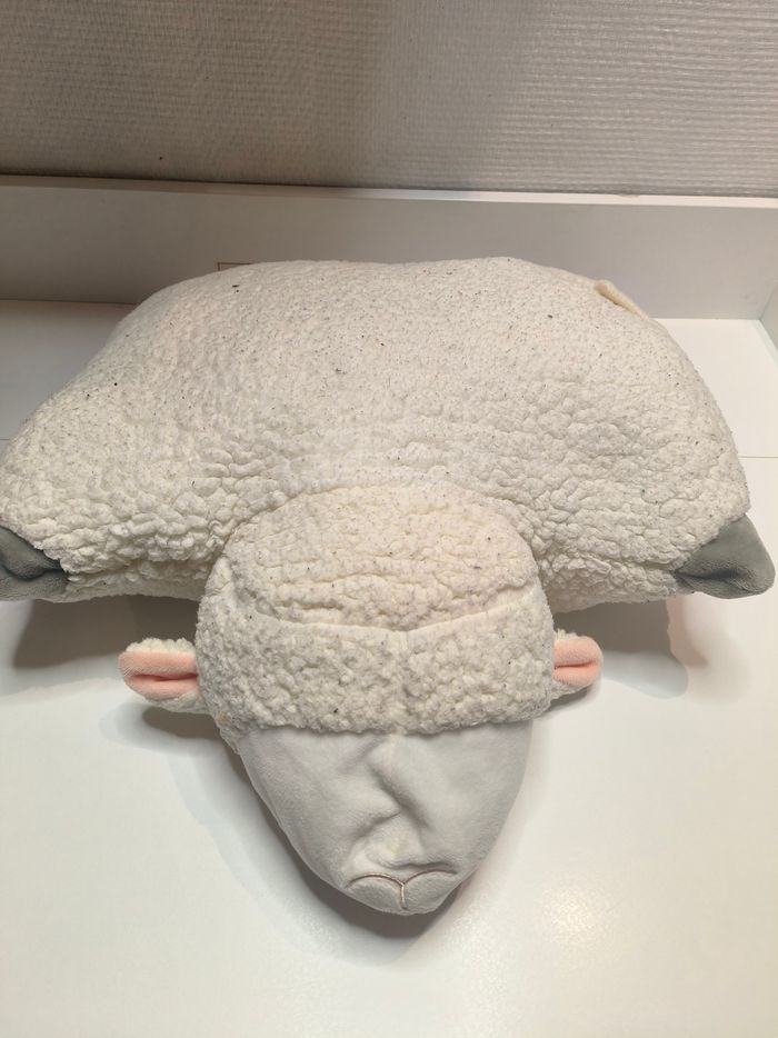 Je vends cette peluche mouton. Elle est réversible en coussin /oreiller.