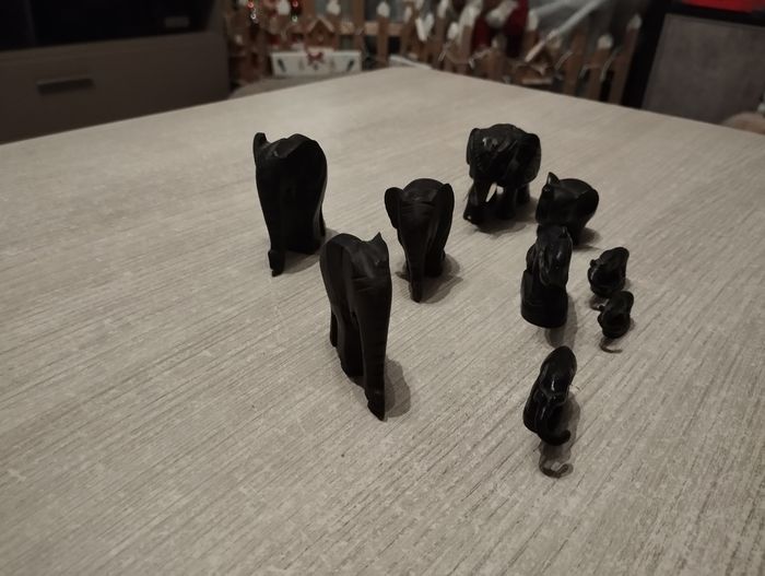 Lot de 9 petits éléphants. Les plus grands mesurent environ 5 cm.