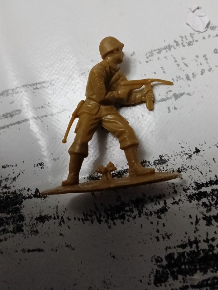 + 1 figurine ACTION casque soldat militaire vintage LANARD 5" marron. Etat satisfaisant