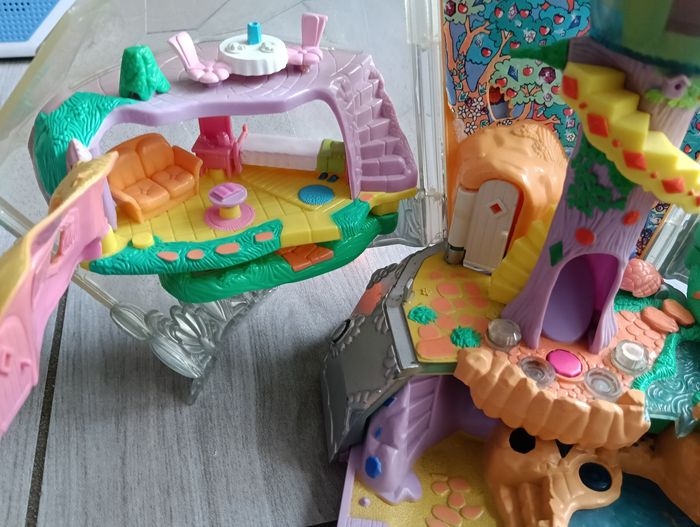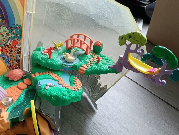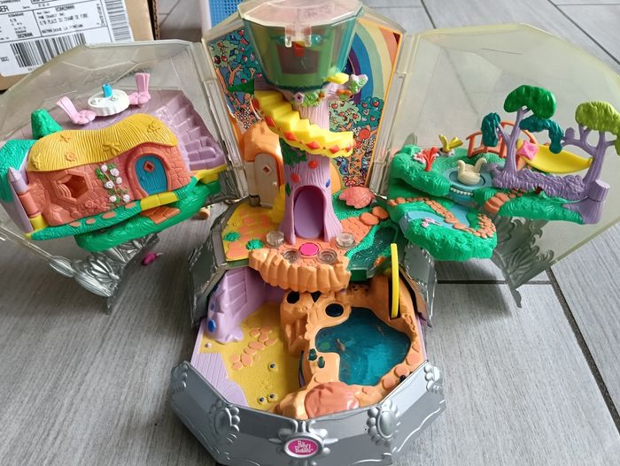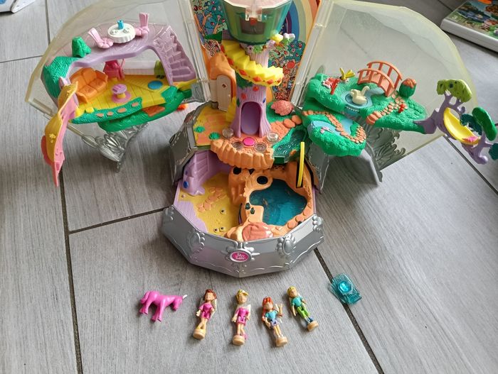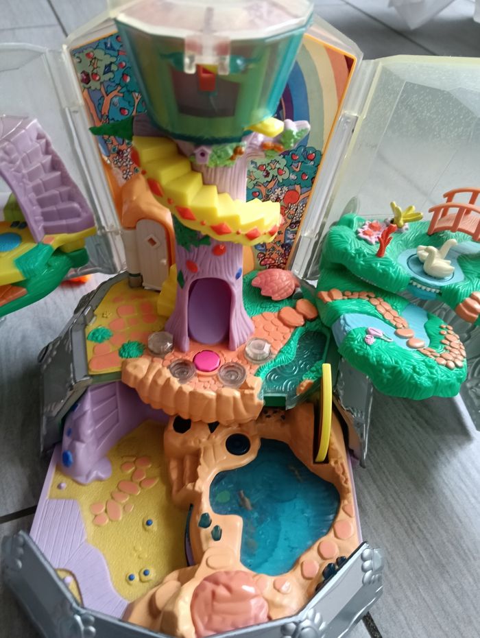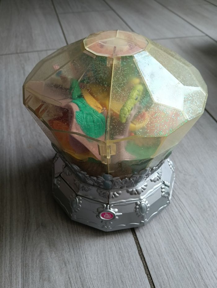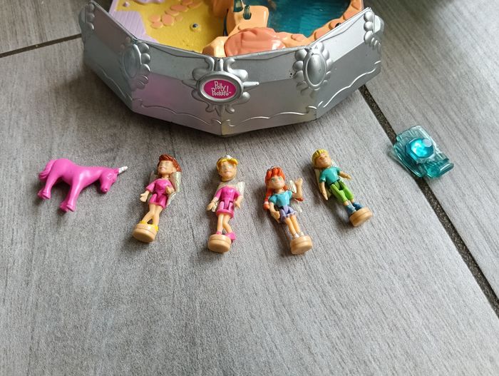 Polly Pocket Magnetic Diamond Wonderland (pays des merveilles du diamant) avec 4 personnages (2 figurines ont la tête cassée mais elle est présente juste à la recoller a la glue) et un cheval rose – Origin Products Ldt 2001. Lumière non testée