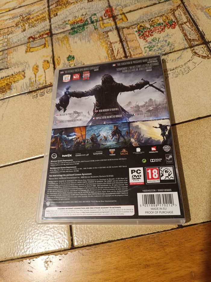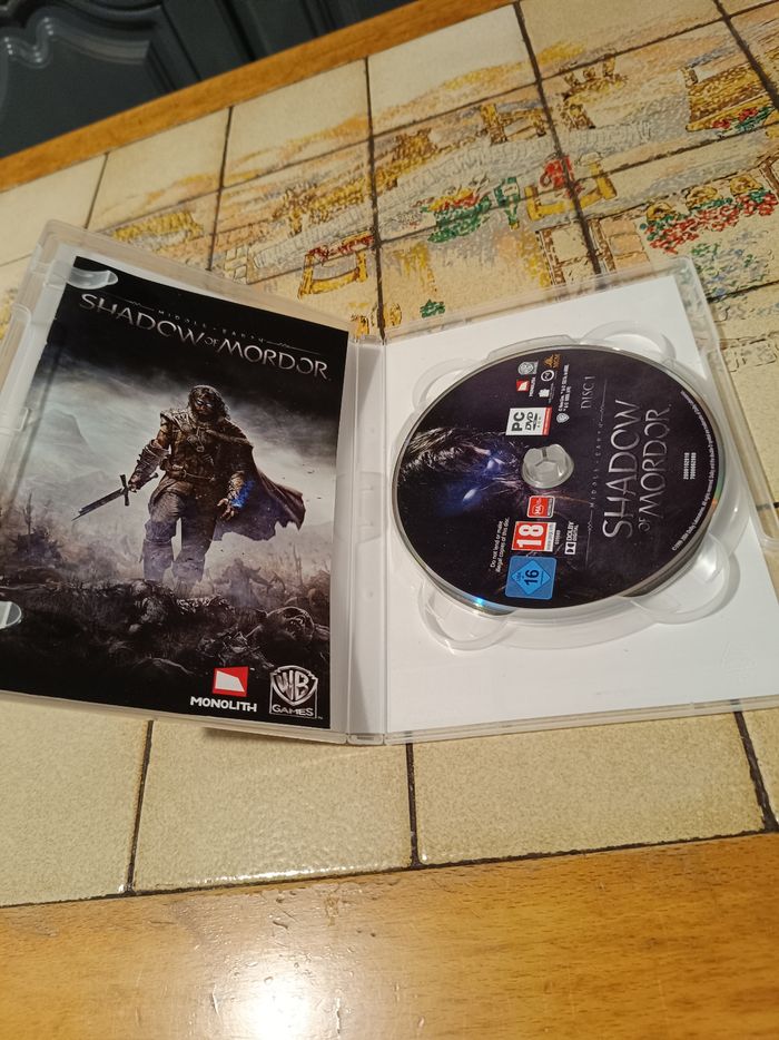 l'édition physique complète du jeu Middle-Earth: Shadow of Mordor sur PC. Cette version est composée de 6 disques DVD pour l'installation des données massives du jeu (monde ouvert, textures haute résolution).