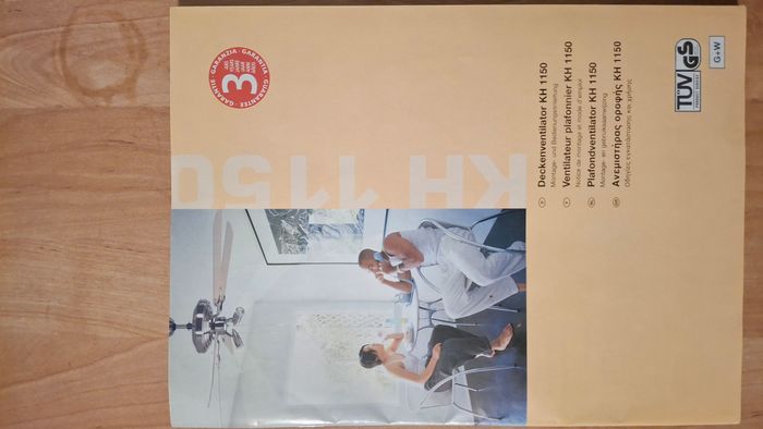 Ventilateur plafonnier 3 spots, 5 hélices en bois Notice incluse