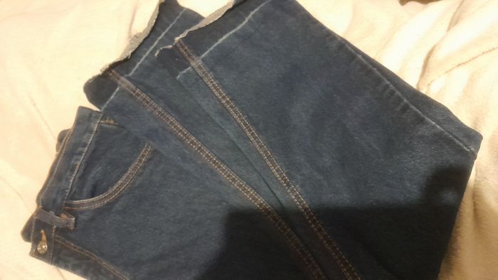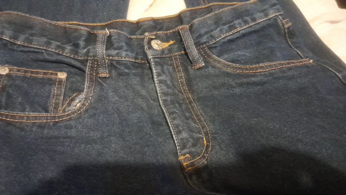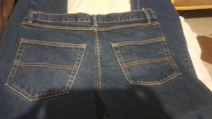 Jeans homme bleu foncé taille 38. Coupe droite. Mesures sur les photos