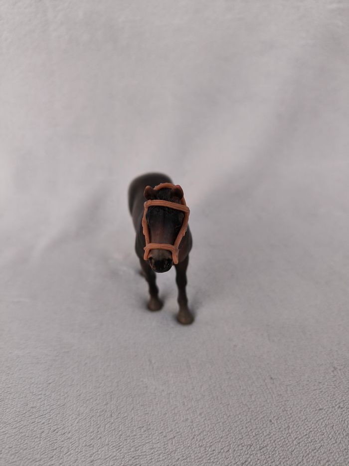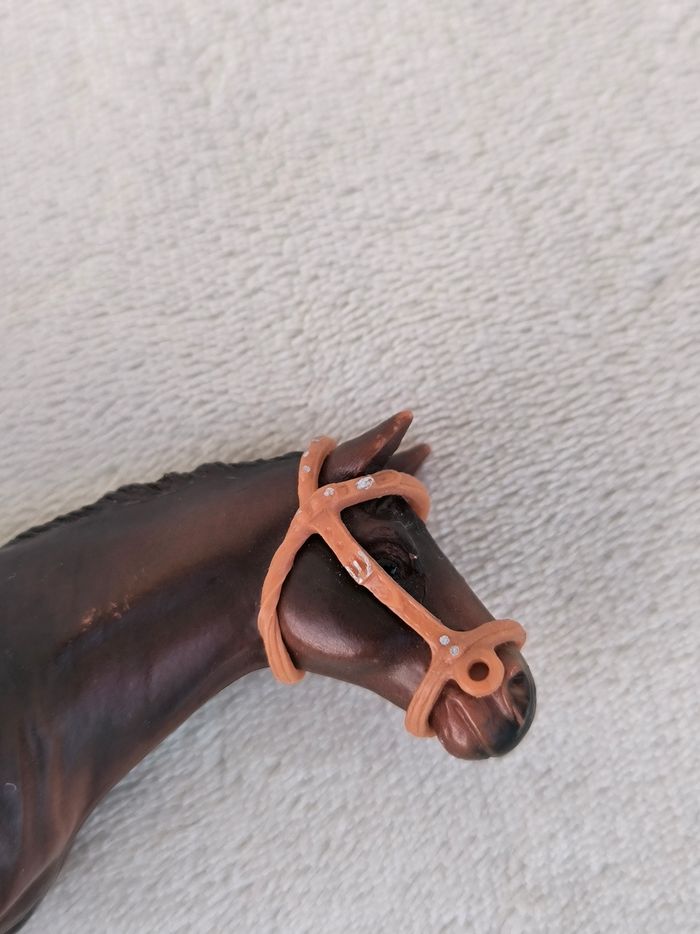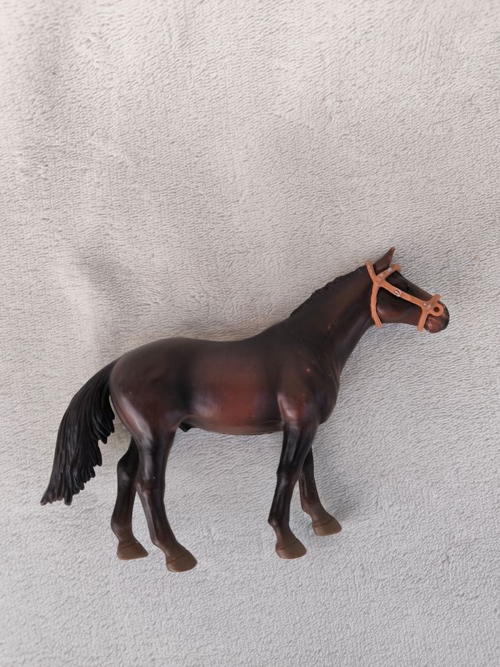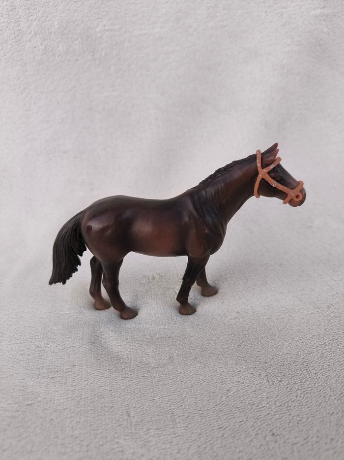 Cheval étalon Race Hongre pur sang Marque Schleich Année 2002 • Coloris marron • Crinière et queue droites • Brides • Petites marques En très bon état #evelyne_jeux