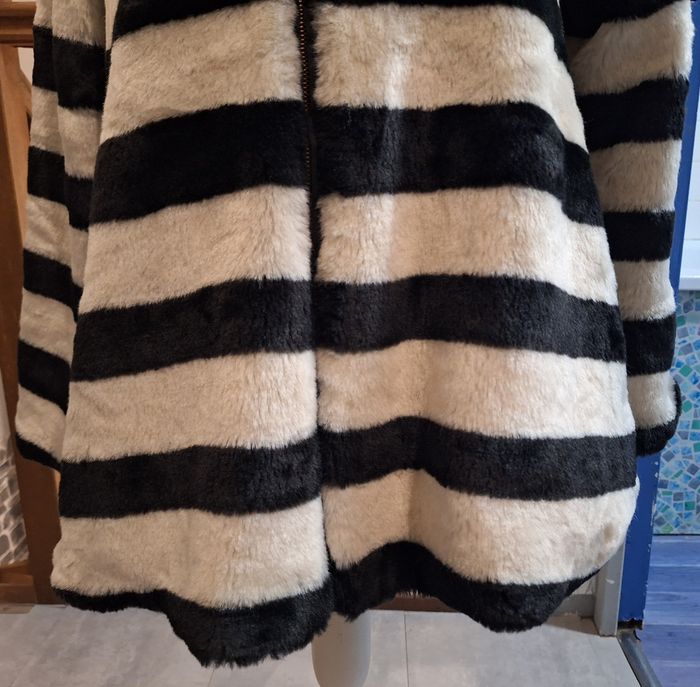 Manteau réversible à fourrure rayée noire et blanche Junior Gaultier - photo numéro 3