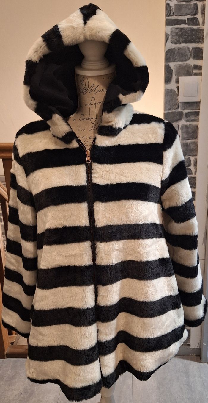 Manteau réversible à fourrure rayée noire et blanche Junior Gaultier - photo numéro 1