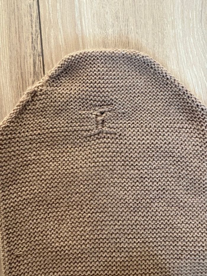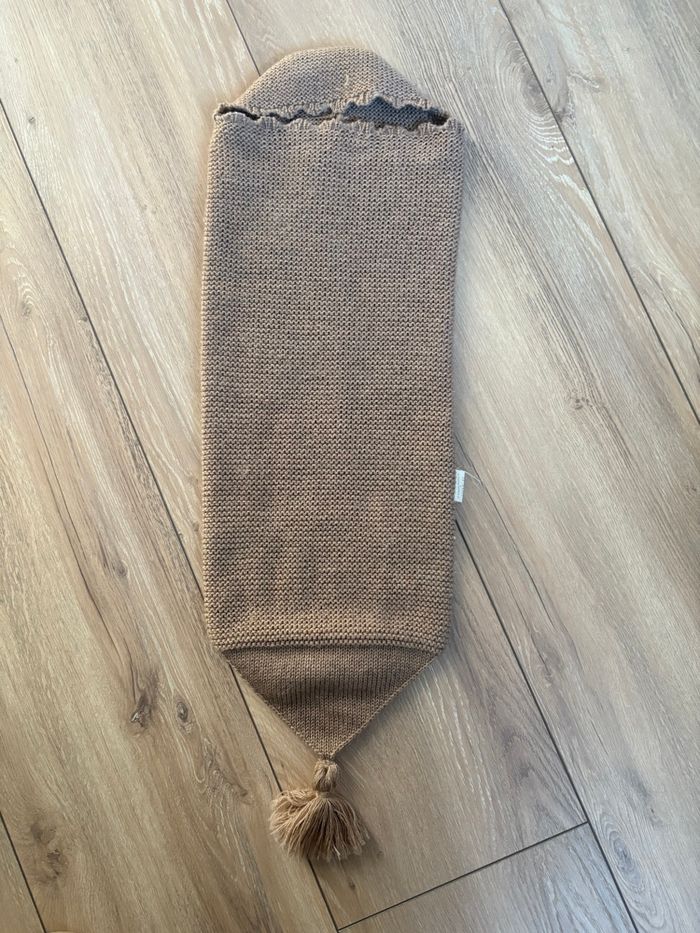 Cocon d’emmaillotage Ilado couleur noisette Valeur 74€ sur le site TBE mis à part derrière un petit accroc recousu voir dernière photo Taille unique 0-6 mois Facile à enfiler 100% Fibre de mérinos Tricoté au Portugal Lavage main