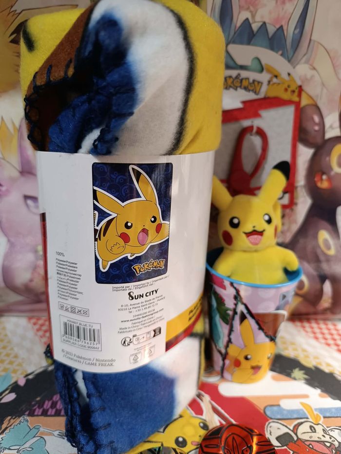 LOT POKÉMON Pikachu – ARTICLES OFFICIELS – NEUF ✨ Un lot idéal pour les fans de Pokémon et de PIKACHU 🎁 Parfait pour un cadeau ou pour compléter une collection Lot d’articles Pokémon officiels, neufs, jamais utilisés. 📦 Contenu du lot : Plaid polaire Pokémon – Pikachu Dimensions : 100 x 150 cm Matière : 100 % polaire ✨ Doux, chaud et confortable Article officiel sous licence Pokémon Porte-clés peluche Pokémon – Pikachu Dimensions : environ 10 cm ✨ Peluche douce et adorable Article officiel sous licence 🔁 Autres modèles Pokémon disponibles Verre Pokémon Contenance : 260 ml Plastique sans BPA Compatible micro-ondes ✨ Idéale pour le quotidien des petits fans 3 jetons Pokémon officiels ℹ️ Informations complémentaires : ✔️ Articles neufs et officiels ✔️ 🎁 Idéal pour une idée cadeau ✔️ 📦 Envoi rapide et soigné ✔️ Boutique : La Caverne de Cydalise