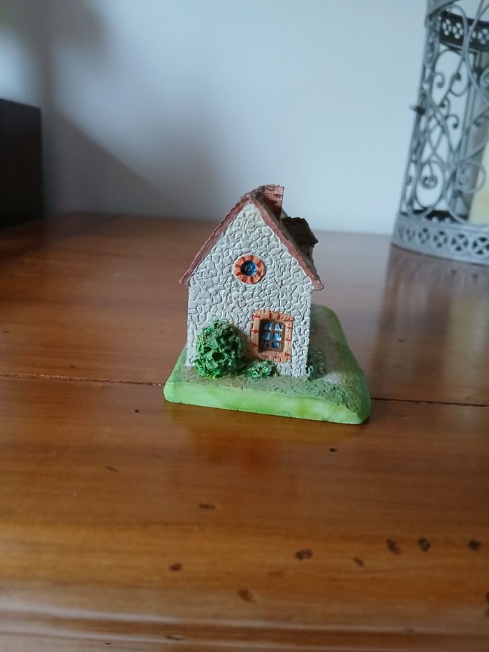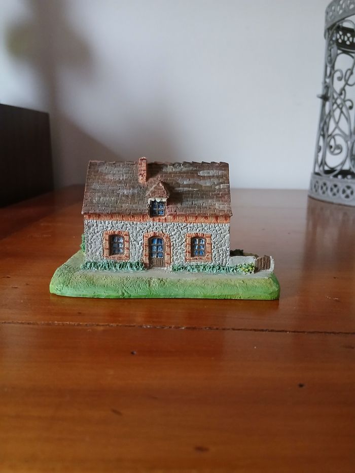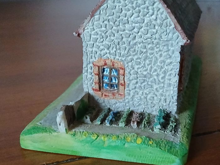 Maison Sarthoise miniature, en résine. Dimensions du socle : 9,7 X 5,5 cm. Hauteur maxi de la maison = 5 cm // voir photos pour détails