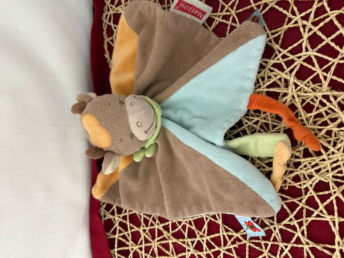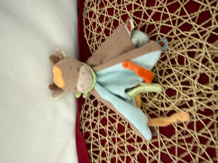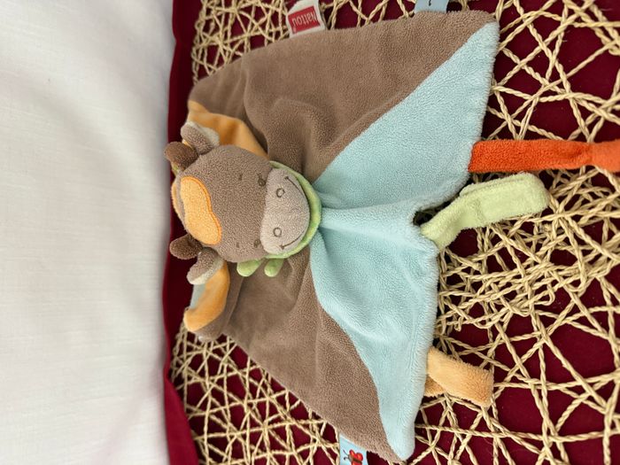 Doudou plat girafe vache marron bleu orange NATTOU
