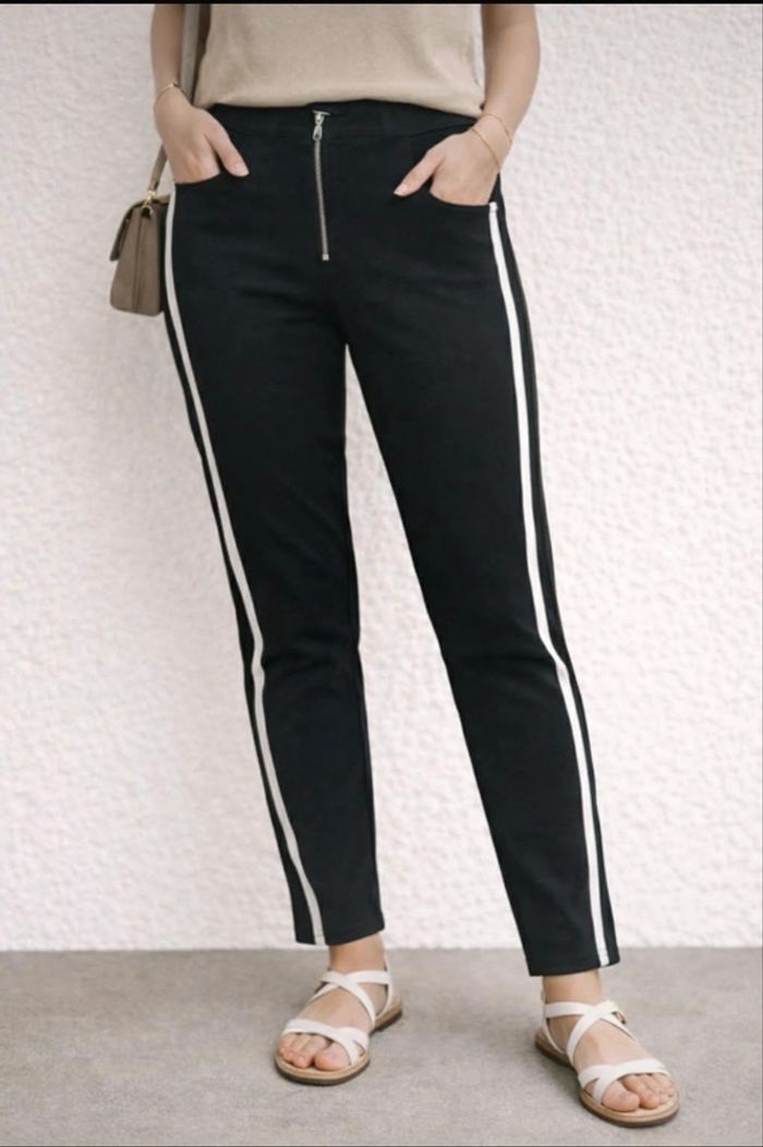 ✨ Pantalon noir tendance avec bandes blanches sur les côtés