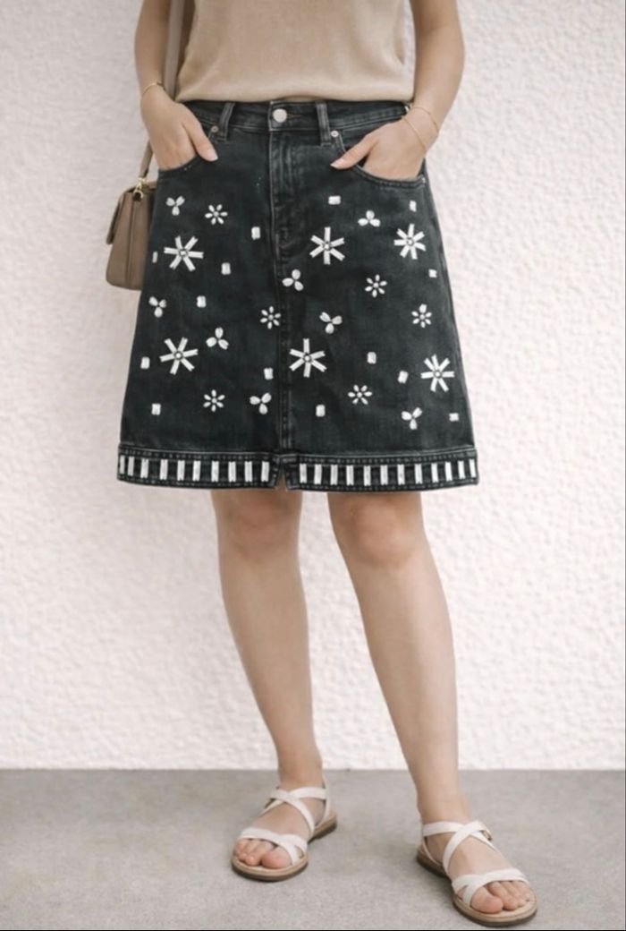 ✨ Jolie jupe en jean noire avec motifs blancs originaux