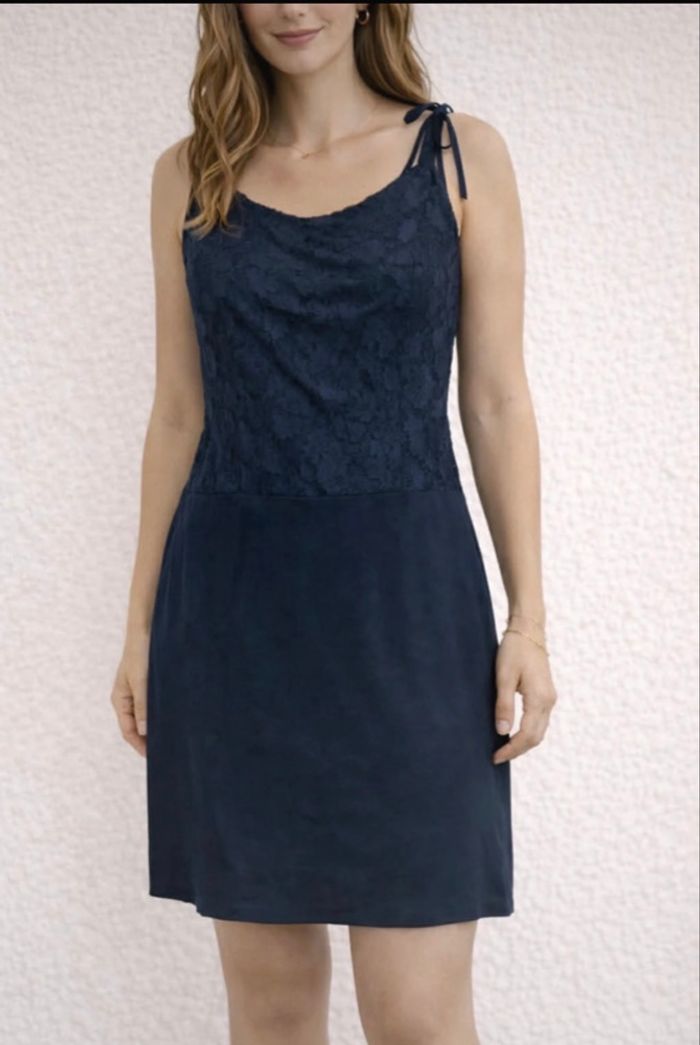 ✨ Jolie robe sans manches avec haut en dentelle et détail noué sur l’épaule.
