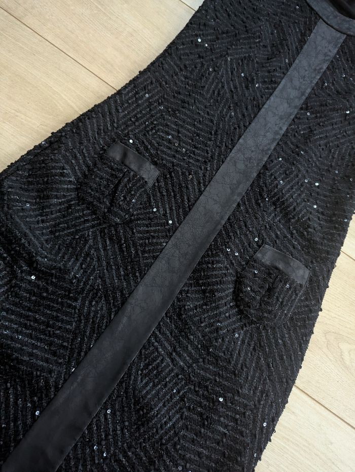 Tissu texturé avec motifs et détails brillants discrets, très jolie tenue.