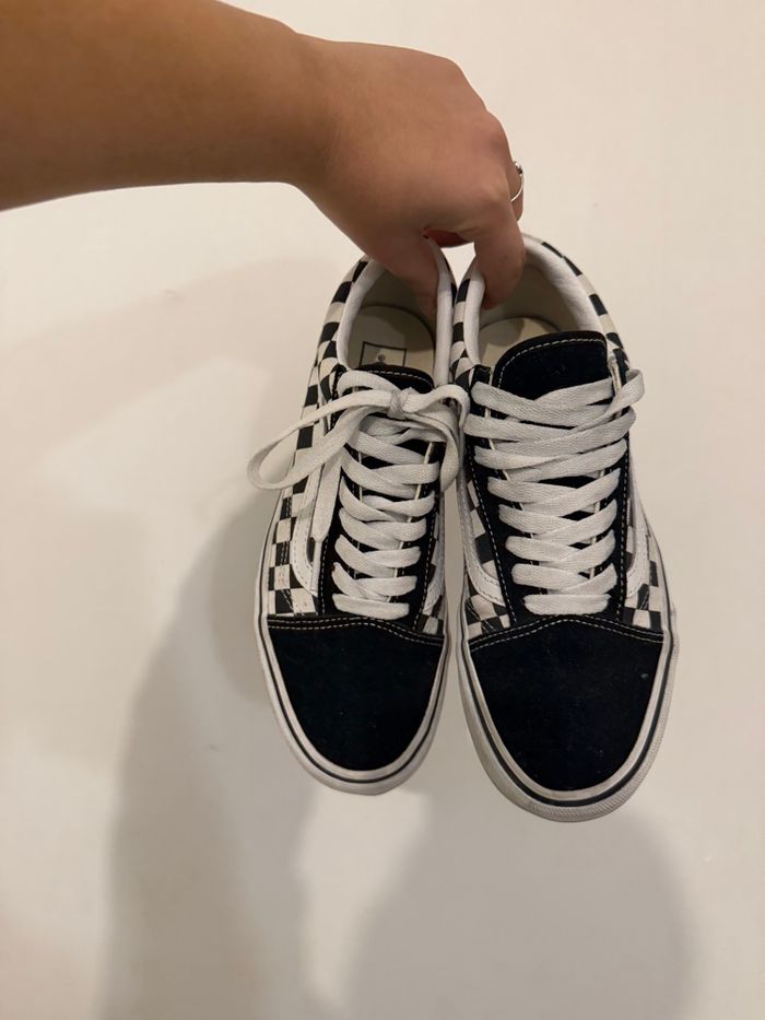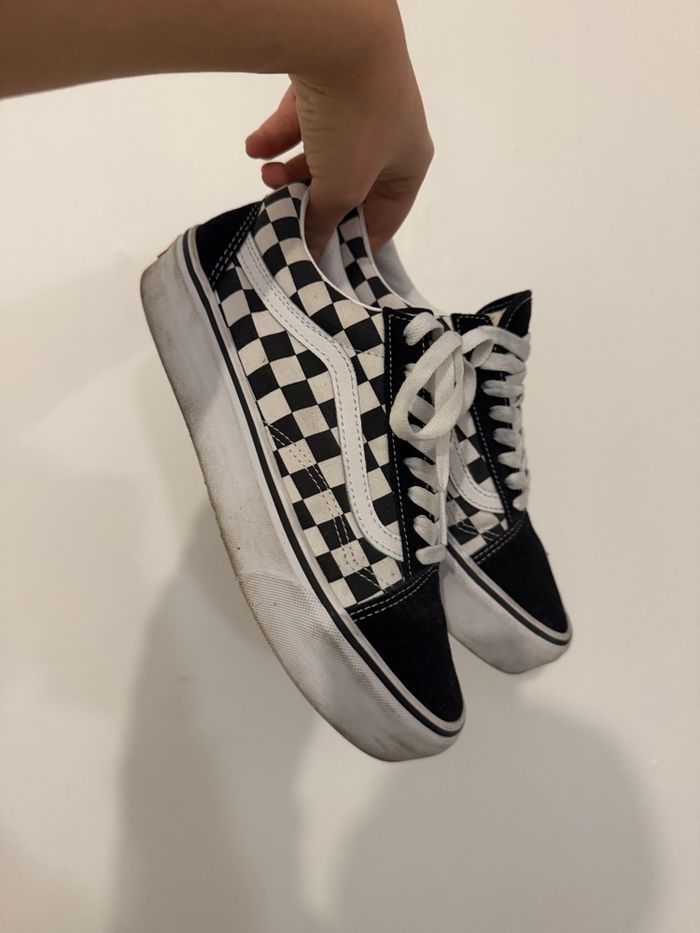 Paire de Vans Old Skool à plateforme, version damier noir & blanc, intemporelle et ultra stylée.