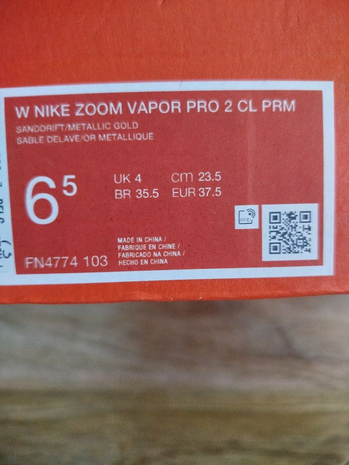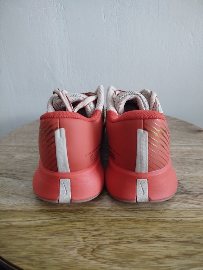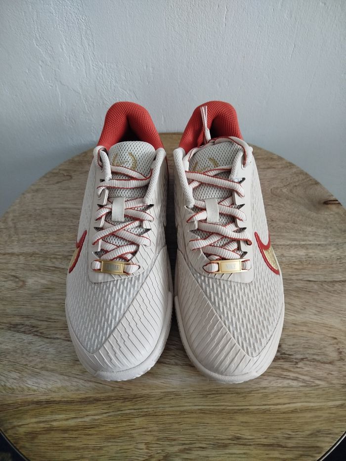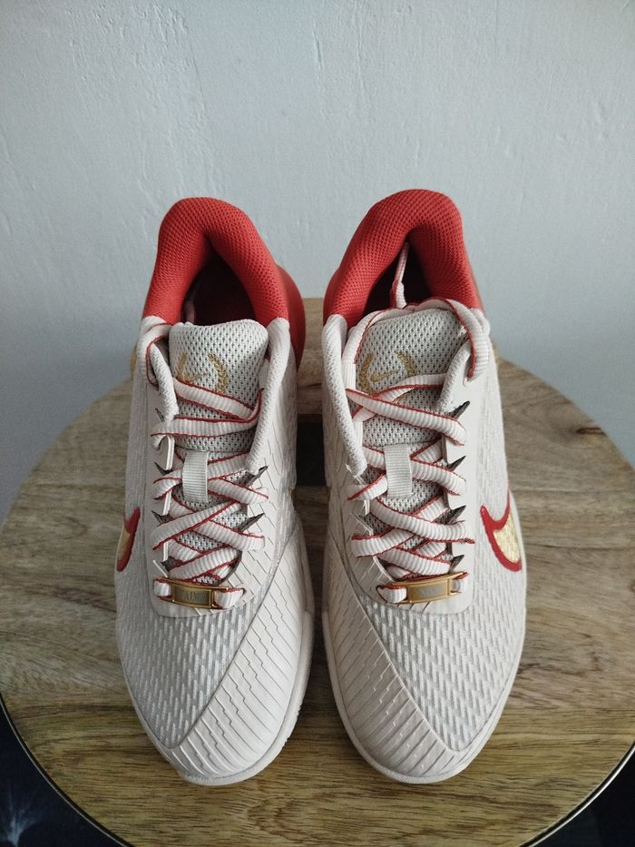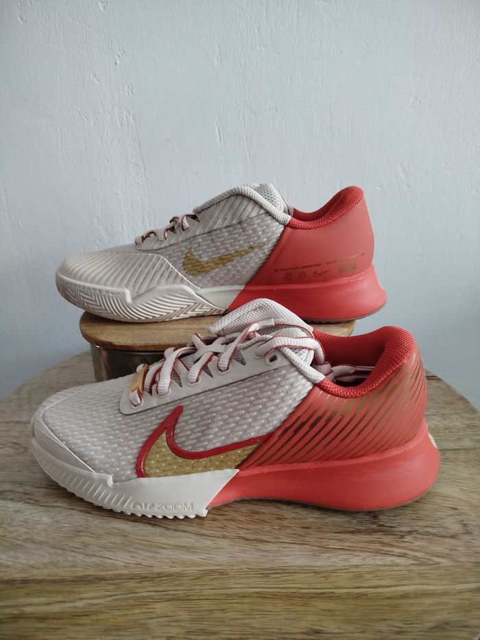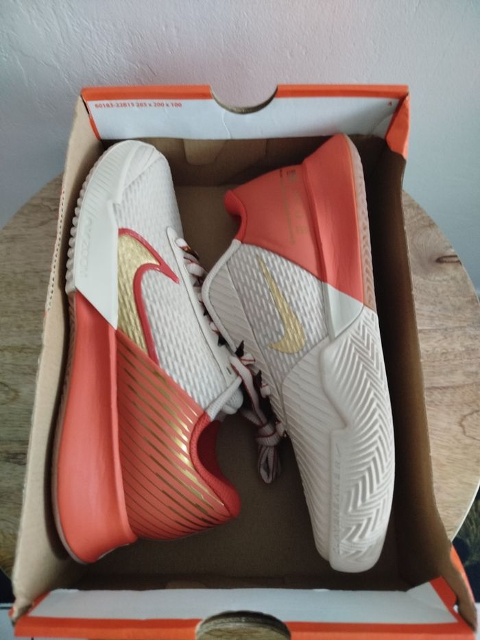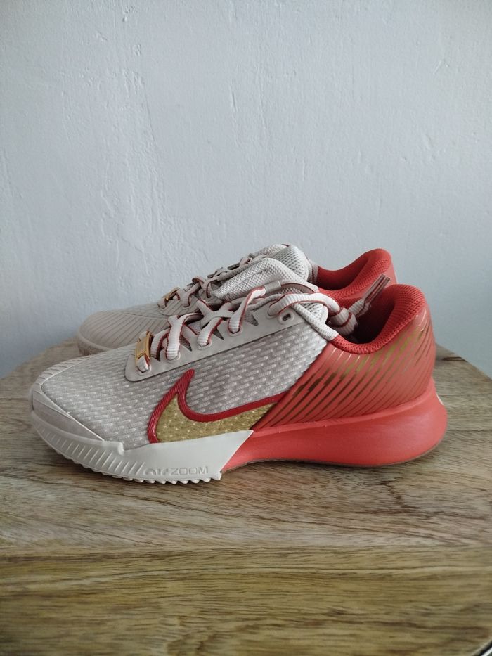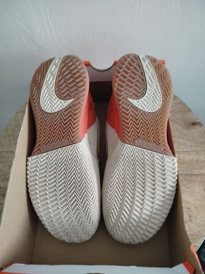 Je vends cette paire de baskets. - Univers : Femme - Marque : Nike - Modèle : zoom vapor pro 2 CL PMR - Pointure : 37,5 - Couleur : Beige orange - Etat : Neuf Boîte sans couvercle N'hésitez pas à me contacter pour plus d'informations ou de photos.