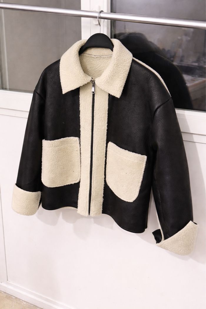 🤍🖤 Veste style aviateur – Intérieur mouton – Taille M