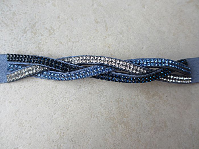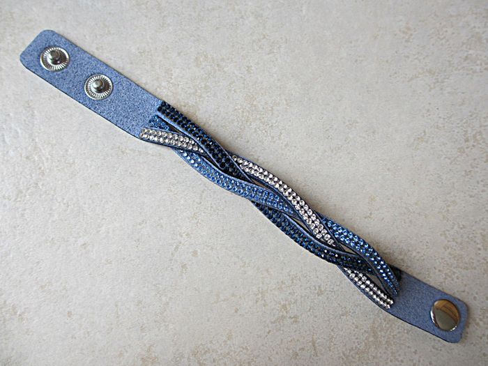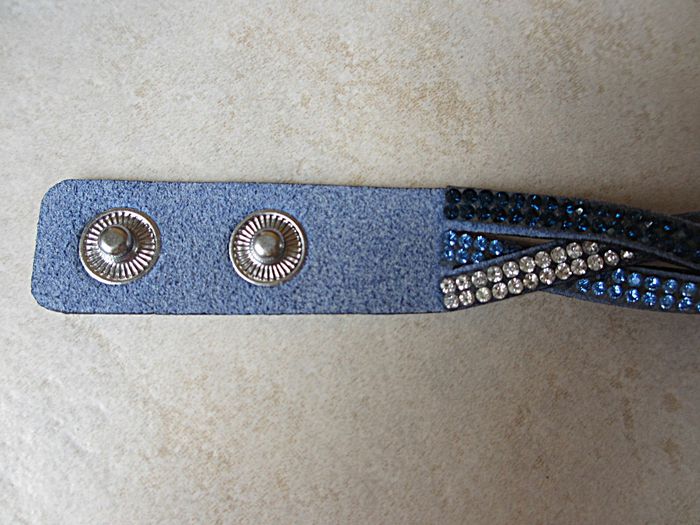 Bracelet fantaisie strass bleus et blancs femme Longueur 20,2 cm. Fermeture pressions 2 positions. Etat neuf.