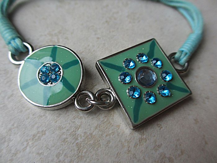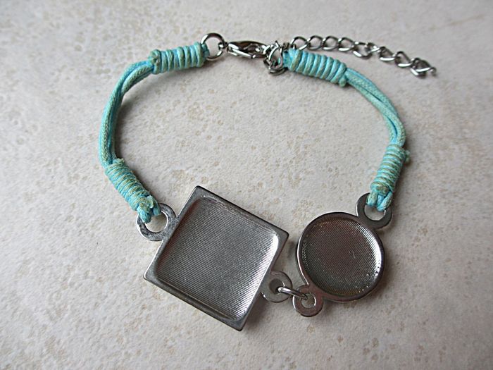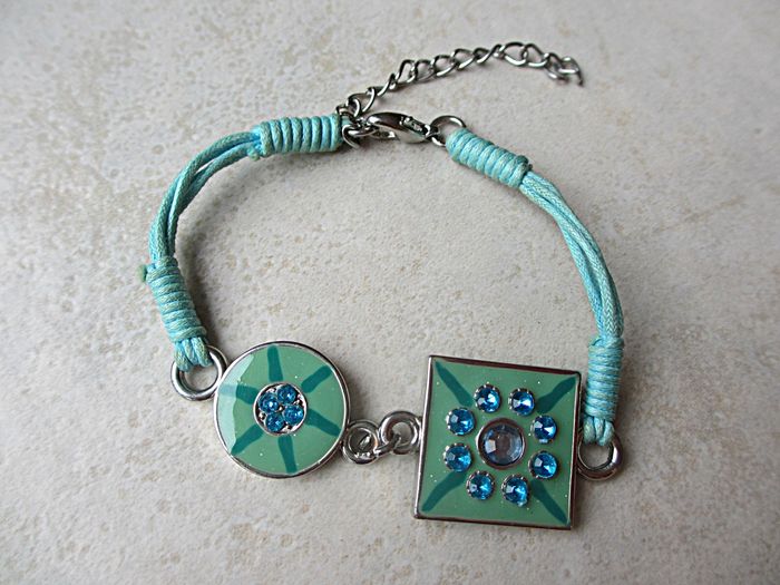Bracelet fantaisie turquoise femme Taille ajustable. Très bon état (mais ficelle un peu salie côté envers).