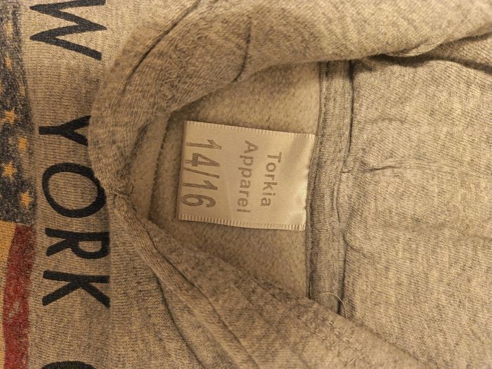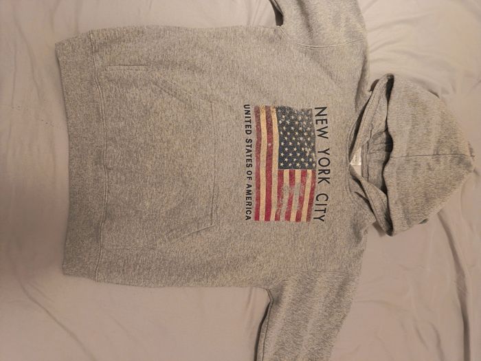 Sweat gris à capuche Torkia Apparel avec drapeau américain et poche kangourou devant. Taille 14-16 ans, 60% coton 40% polyester. En bon état. Envoi rapide, prix négociable.