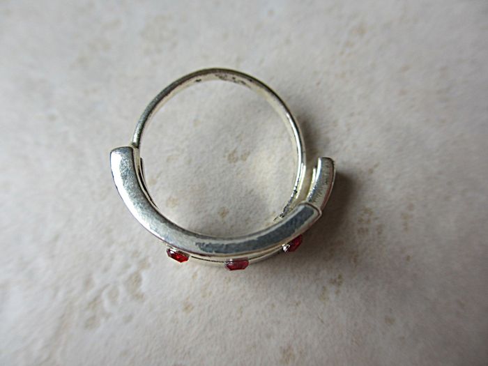 Bague fantaisie femme (strass rouges) Taille ajustable. Bon état.
