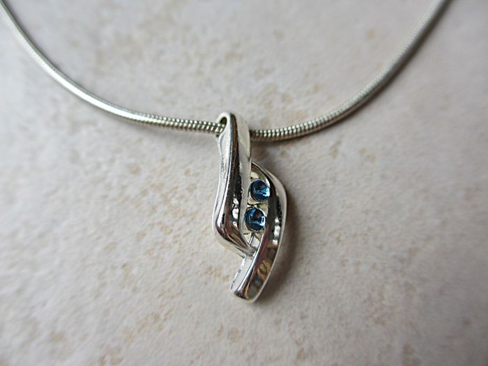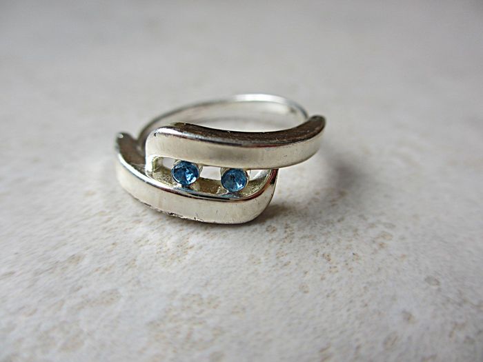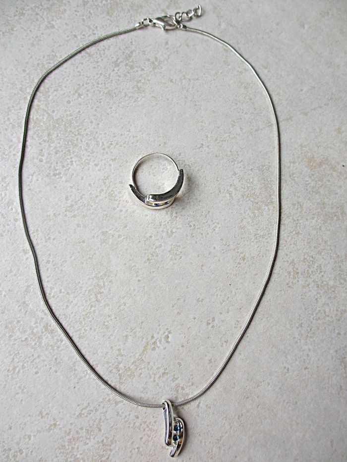 Ensemble collier et bague fantaisie métal femme (strass bleus) Taille ajustable. Bon état.
