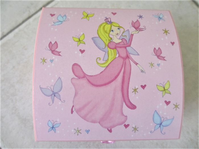 Dimensions : 10,8 x 10,8 x 10 cm. Motif princesse. Clé à remonter au dos pour déclencher la musique et faire tourner la danseuse à l’intérieur.