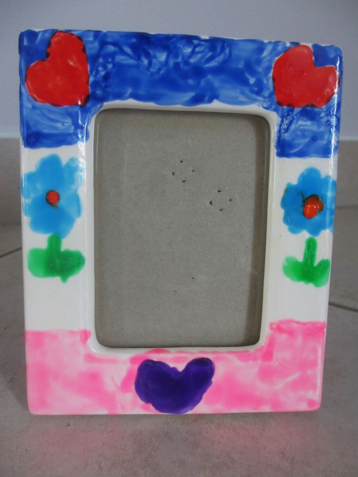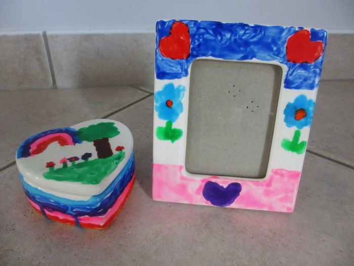 Lot boîte coeur + cadre en porcelaine peints à la main