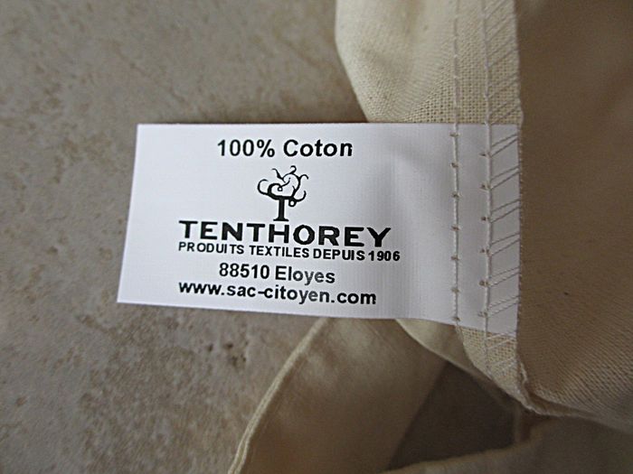 Tote bag « Lucart » Dimensions : largeur 36 x hauteur 39,5 cm. 100 % coton. Tissé dans les Vosges par Tenthorey. Etat neuf.