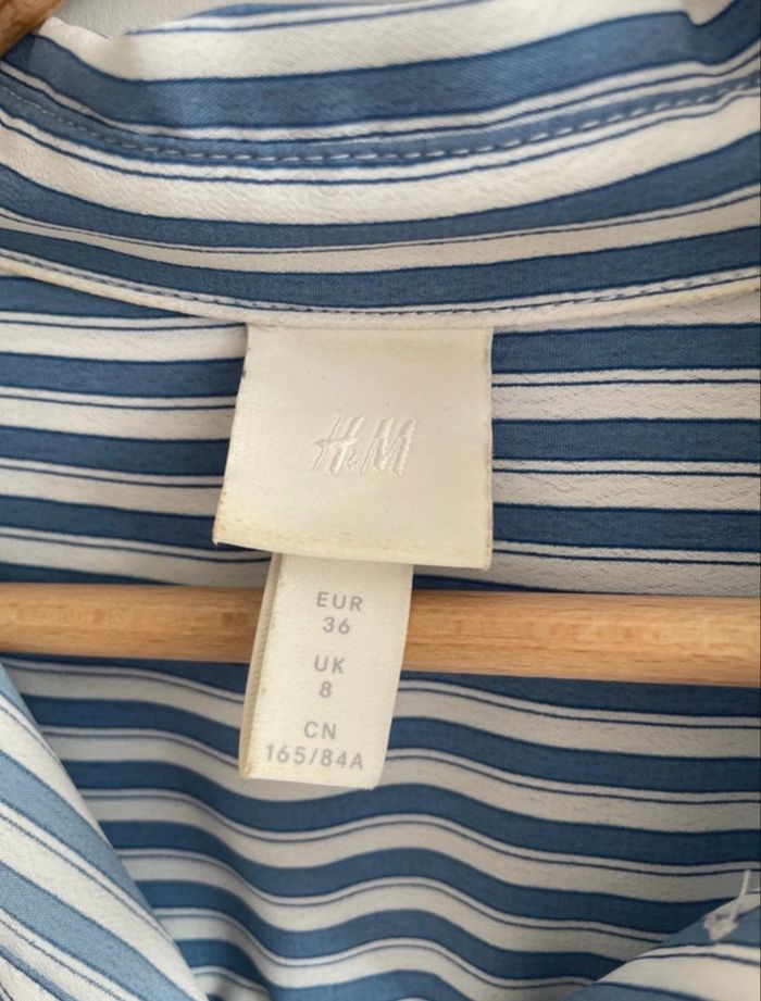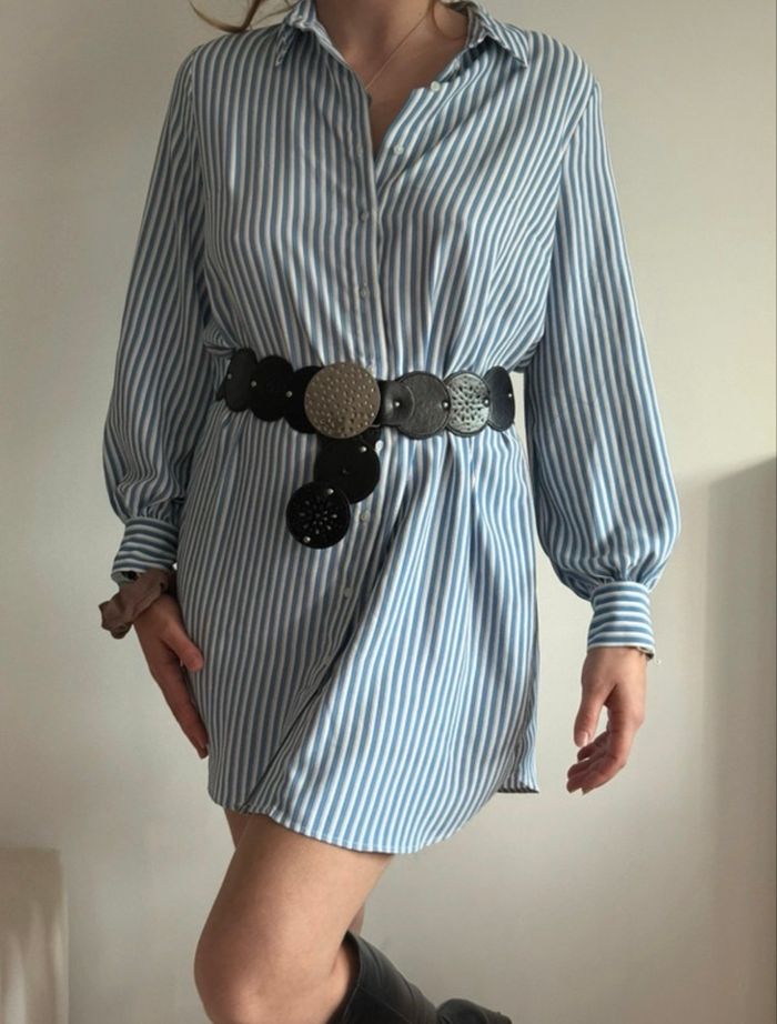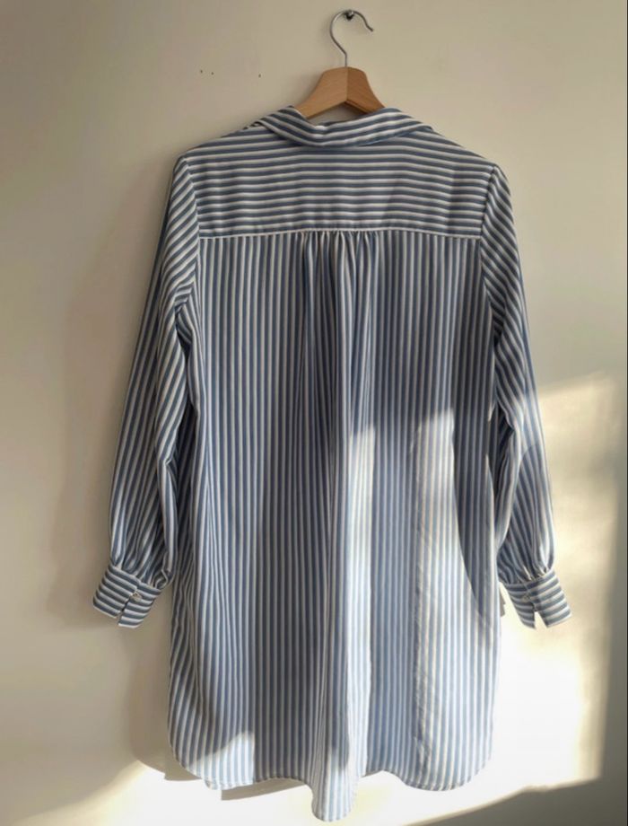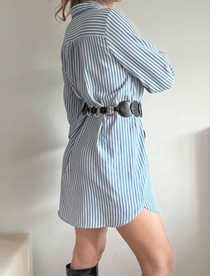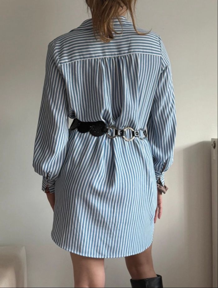 Robe chemise à rayures bleues et blanches Manches longues, boutons jusqu’en bas, poignets boutonnés.
