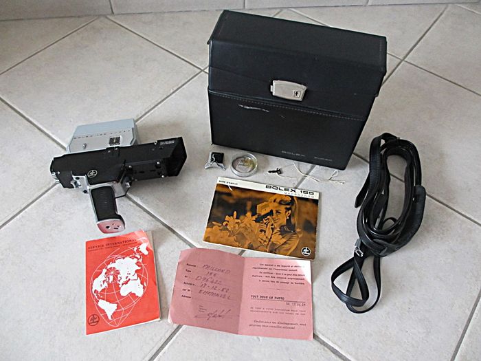 Caméra Paillard Bolex 155 Super 8 Macrozoom 30 mm N° D 76422 de 1968. En métal, à piles, pour cartouches de 30 mètres. Valisette cuir, avec bandoulière. Très bon état.