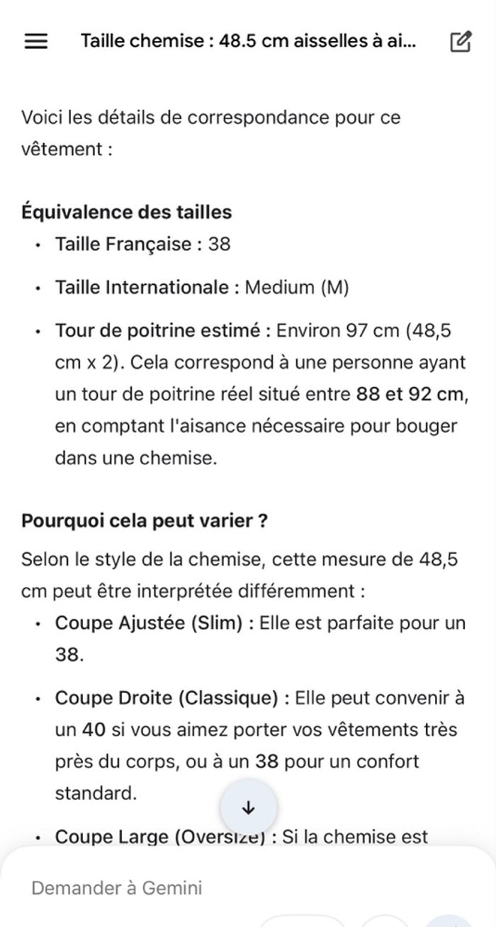Chemise à carreaux »H&M »de couleurs bleu,blanche et rose à manches longues,en très bel état. Il est noté sur l’étiquette taille 38 mais selon deux guides de l’IA,il en ressort 38/30. Mesure d’aisselle a aisselle:48,5cm=97cm de tour de poitrine. 🎯Guides de tailles disponibles en dernières photos. 📌Il faut savoir que souvent les marques peuvent avoir un guide de taille qui diffère des unes aux autres donc Merci de vérifier les mesures de vos vêtements avec celui-ci car si ça ne convient pas je n’en serais pas responsable. Si vous avez le moindre doute, n’hésitez pas avant achat de me demander les mesures ou renseignements afin d’éviter tous désagréments. PS:Tous les vêtements sont lavés et repassés avant chaque envoi. 🔥🔥Réduction sur les lots activée🔥🔥 -5% de remise pour 2 articles. -10% de remise pour 3 articles. -20% de remise pour 5 articles.