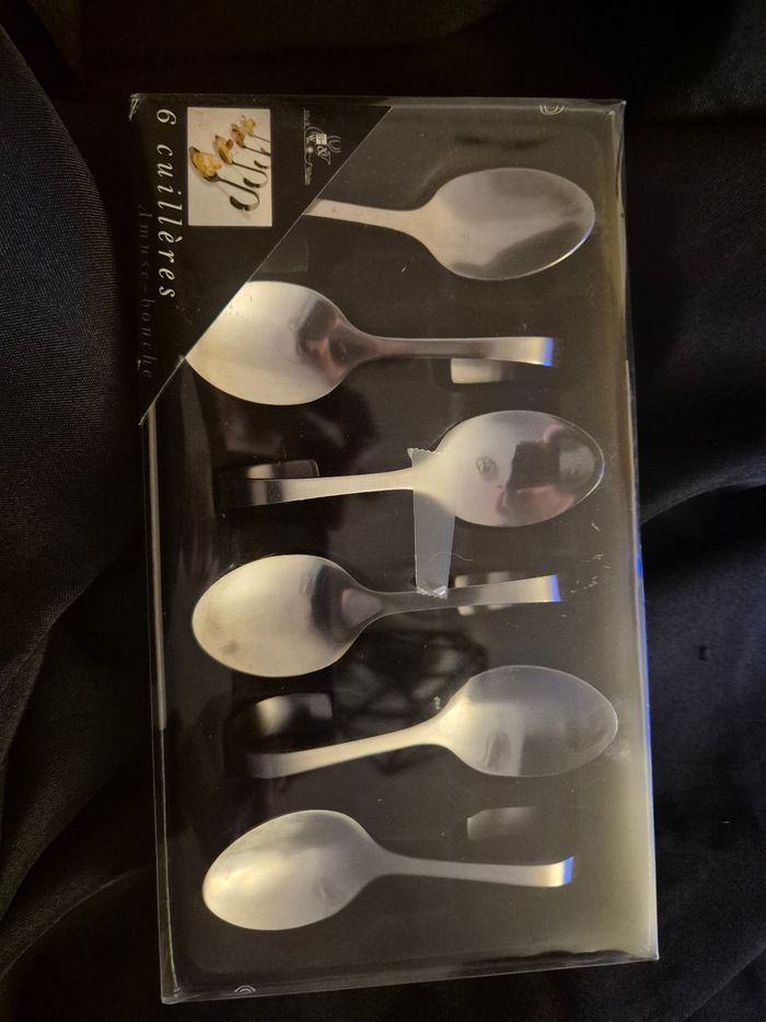 ▪︎Coffret de 6 cuillères amuse-bouche pour apéritif ▪︎Neuf boîte scellée ▪︎Lave vaisselle ✅️
